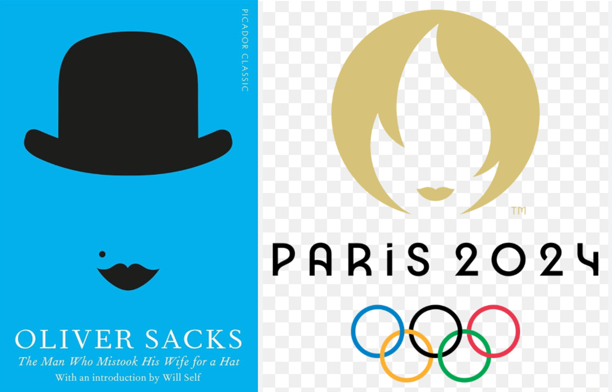 And for no particular reason, the strangely similar logos of book The Man Who Mistook His Wife for a Hat, and the 2024 Paris Olympics: